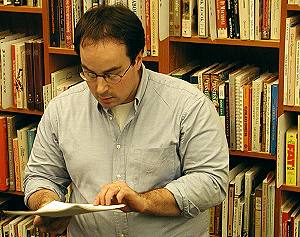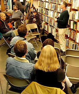 Later that same day, many of us were also at Titlewave Books on Lower Queen Anne for the store’s monthly reading series. Above, print MISC contributor Doug Nufer warms up the crowd with a short story written in the jargon of circus workers. Below, fellow print MISC contributor Matt Briggs offers highlights from his forthcoming short-story collection.
