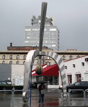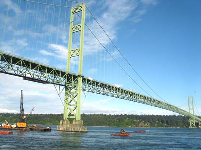 I can’t think of many reasons to go enter the Beaver State through any means other than the train. Instead of strip malls and off ramps, you get to see farmlands, forests, Puget Sound, the Tacoma Narrows (above), the Columbia River, the giant egg statue at the town of Winlock, WA, and much more; and all the while you get to eat, drink, read, work, and/or watch an in-train movie. (The one this time was A Guy Thing, another of those horridly average sitcom movies set in Seattle but filmed in Vancouver.)