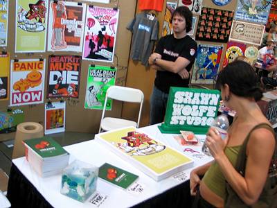 Then it was off to Flatstock 3, an annual showcase of rock-poster art and the artists who make it, held in a different city each year. Since each poster was designed to shout for your attention on a wall or a light pole, the sight of hundreds of them at once leads to a not-unpleasant-at-all kind of sensory overload, much like that of the best rock n’ roll itself.