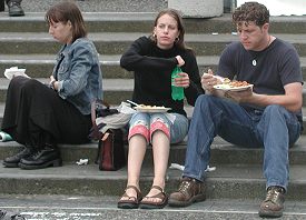 OVERREACTION DEPT.: The supposed “gang riot” last Saturday at the Fun Forest was, as far as I’ve been able to determine, really just either an argument or an exhibition of horseplay by a handful of rowdy teens; climaxing either with a few gunshots into the air or (more likely) firecrackers. The ensuing scramble among sweaty, crowded kids set cops scrambling into crisis mode and herding all opposite-race youths off of the grounds. Live TV reporters got all hussied-up about a Sudden Threat to Public Safety, while the kids passing by just giggled or mugged it up to the cameras–this was a big Dionysian revel that had merely gotten a bit out of hand, not the huge angry mob depicted. More telling was the scene the following late afternoon, in which teams of cops with plastic face masks and billy clubs shooed any and all groups of three or more young Af-Ams not just off the Center property but out of the larger vicinity. It’s not just the Sidran gang and the anti-affirmative-action cadre who fear blacks, particularly young blacks. The fear is ingrained in the popular image of a clean, ordered city where everybody’s soft-spoken and unassuming. Lots of real Af-Ams are just like that, of course; but lots of whites still think (consciously or sub-) that Black + Young = Gangsta. (White teens can get rowdy too, but tend not to inspire such wholesale crackdowns.) Elsewhere last weekend…