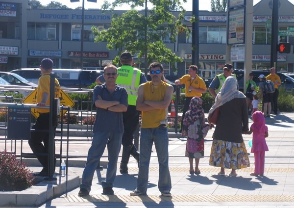 …the Seafair Torchlight Parade drew thousands from the whole tri-county region to Fourth Avenue on July 25, to witness the usual sequence of drill teams, marching bands, floats, horses, big balloons, clowns, and politicians. This year’s grand marshalls were ex-Seahawks coach Mike Holmgren and local radio legend Pat O’Day.